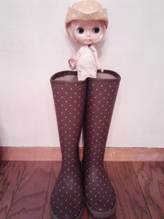 リョコちゃんに長靴見せてってメールしたら、長靴の上にブライスのキラが乗ってたので(笑)