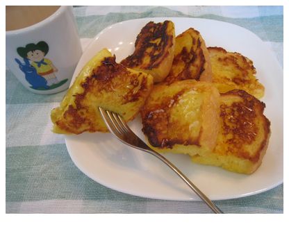残りの部分を細かく切って、きのうはフレンチトーストで締めたヨ。