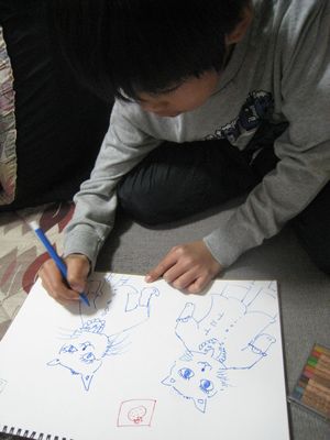 ネコの横に、りゅうが模写していました。