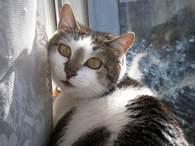 ↑朝のチェル氏。帰宅してすぐ様子を見ましたがおめめの調子は○。